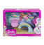 Užij si spoustu zábavy s tímto herním setem Dreamtopia, který ukrývá spoustu parádních doplňků! Pomoz Barbie® mořské víle s péčí o miminko a batole. Podívej, všichni tři mají pestrobarevný vršek a ocasní ploutev jako skutečné mořské panny! Užijte si společně spoustu zábavy při klouzání na duhové skluzavce nebo houpání na houpačce. Jakmile je čas si odpočinout, ulož miminko do kolíbky a batole do postýlky ve tvaru mušle. V setu na tebe čeká ještě jeden malý kamarád narval, který umí dokonce i stříkat vodu! A to ještě není vše! V každém balení se ukrývá narval v jiné barvě. Jaký bude ten tvůj?