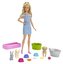 Malé milovnice zvířátek budou nadšené z tohoto Barbie® herního setu, který ukrývá tři zvířátka, která mění barvu! Seznam se se štěňátkem, koťátkem a králíčkem. V herním setu na tebe čeká více než 10 doplňků, které ti pomohou s péčí o tvé nové chlupaté kamarády. Připrav každému z nich mističku s oblíbenou pochoutkou (kostičkou, rybkou a svazkem mrkviček). Je čas si hrát! Naplň travnatou herní plochu studenou vodou a užijte si společně spoustu zábavy. Ale ne! Podívej, jak jsou tví kamarádi špinaví! Naplň vaničku teplou vodou, vlož do ní všechna zvířátka a sleduj, jak všechna špína zmizí! Panenka Barbie® se oblékla do volnočasového oblečku a botek a nemůže se dočkat, až si spolu užijete spoustu zábavy při péči o tato roztomilá zvířátka.