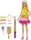 Vyzkoušej si roli kadeřnice a postarej se panence Barbie® o její překrásné vlasy. Panenka Barbie® chce mít vlnité vlasy. Pomůžeš jí splnit tento sen? Pojďme se do toho pustit! Máš dvě možnosti, jak panence Barbie® navlnit její dlouhé vlasy. Použij kulmu nebo natáčky, oboje samozřejmě bez tepla, aby se její vlasy nepoškodily. Jednoduše obtoč panenčiny vlasy kolem kulmy nebo natáček, chvilku přidrž a pusť. Je jen na tobě, zda vytvoříš spoustu malých vlnek, velké vlny nebo necháš její vlasy rovné. Poté dolaď panenčin účes k dokonalosti pomocí přiloženého hřebenu, gumiček, sponek a čelenky. Panenka Barbie® je oblečena do pestrobarevného oblečku, který se skvěle hodí ke každému tvému příběhu. Vytvářej nejrůznější účesy podle svých představ!