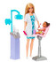 Panenka Barbie® zubařka má na sobě modré šaty, bílý plášť a je připravena postarat se o svou malou pacientku. Součástí herního setu je zubařské křeslo, souprava na vyplachování úst a šest dalších doplňků. Obsahuje panenku Barbie® s blonďatými vlasy. Panenka nemůže stát samostatně. Věk 3+ číst celé