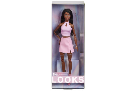 Panenka Barbie® Looks™ S copánky v růžovém outfitu. Tato módní panenka je vždy připravena na fotografování a inspiruje stylistku, která se v dětech skrývá. Nejnovější řada je plná pastelových a metalických barev a inspiruje se stylem 90. let. Tato polohovatelná panenka Barbie® Looks™ s vlnitými černými vlasy má na sobě dvoudílný obleček s botami nad kolena. Panenka neumí samostatně stát. Barvy a vzhled výrobku se mohou lišit. Věk 6+