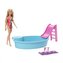Připoj se k panence Barbie® a užijte si společně horké letní dny u jejího bazénu. Tento parádní modrý bazén je tak akorát velký pro panenku Barbie® i všechny její sestřičky. Napusť do něj vodu, namíchej osvěžující nápoje do připravených sklenic a umísti je na vestavěný stolek, kde je budou mít panenky neustále nadosah. Jakmile si budete chtít s panenkami užít trochu zábavy, stačí vyšplhat po schůdkách na stylovou klouzačku a zábava začíná. A když je na čase jít z vody ven, použij připravenou osušku, která může posloužit i jako deka. Panenka Barbie® se oblékla do zářivých plavek s pestrobarevnými vzory a již se nemůže dočkat, až společně uspořádáte bazénovou párty.