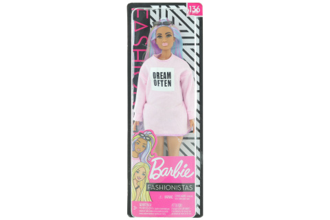 Každá panenka Barbie® z kolekce Modelka se vyznačuje svým výjimečným vzhledem a outfitem, který je inspirován nejnovějšími módními trendy. Spolu s velkou různorodostí a rozmanitostí stylů, oblečků, bot a doplňků přináší panenka Barbie® dívkám nekonečné množství možností, jak probudit jejich představivost. Tato panenka Barbie® si oblékla růžové šaty s nápisem Dream often, bílé tenisky a sluneční brýle. Její dlouhé vlasy jsou ve stylu mořské víly v krásných duhových barvách. Věk 3+