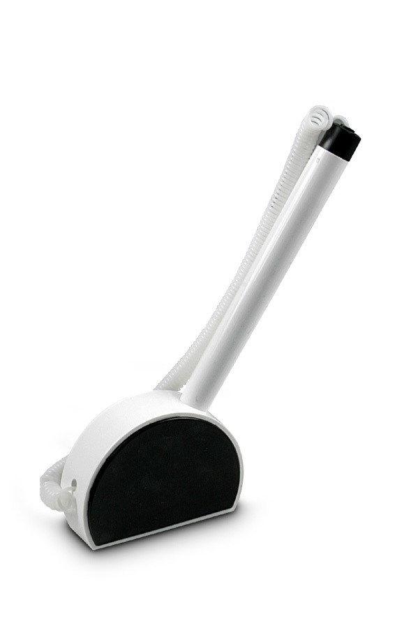 Kuličkové pero ve stojánku - zavěšené na pružině. Dodáváno s oboustrannou lepící páskou. Náplň X-20.