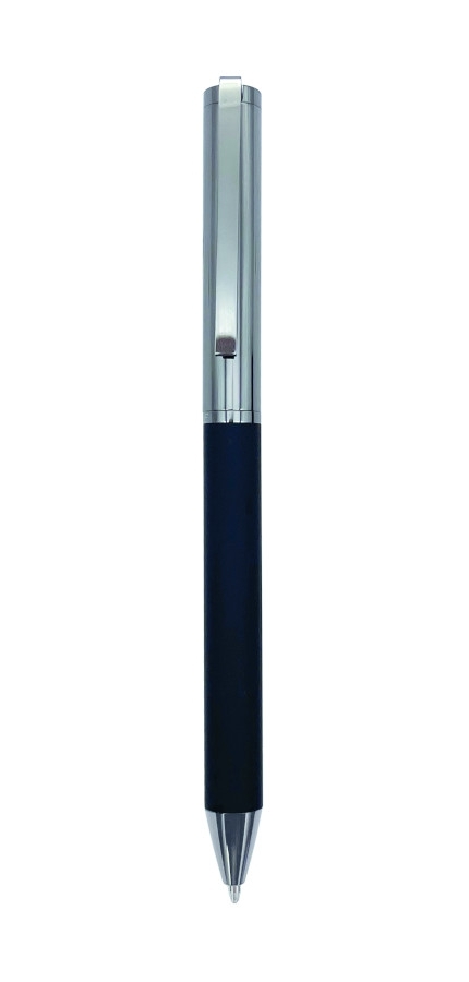 Kovové kuličkové pero s otočným mechanismem v černém provedení. Toto pero disponuje kovovým klipem a gumovým úchopem, což zaručuje pohodlné psaní. Šíře hrotu 1,0mm. Dodáváno v elegantní černé krabičce. Náhradní náplň Silver kov.