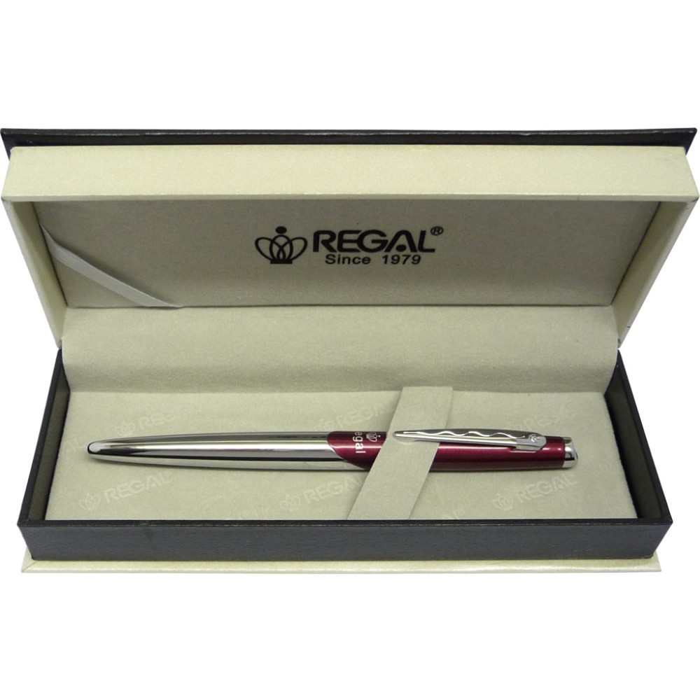 kuličkové pero s vyměnitelnou náplní uložené v dárkové krabičce, stříbrné kovové tělo a barevné vičko se stříbrným klipem, náplň modrá+ dárková taška Regal