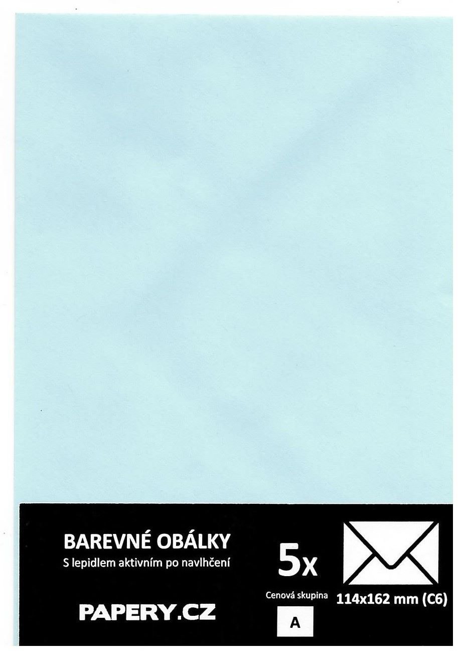 barevná obálka 114X162 MODRÁ SVĚTLÁ, 5 kusů, 100 gm2, olizová