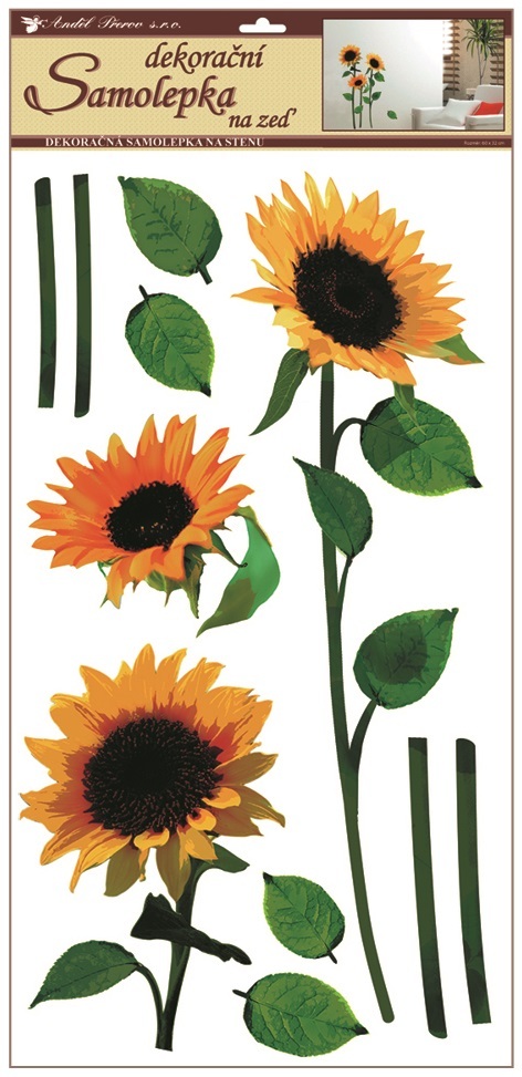 Samolepky na zeď tři slunečnice přinášejí přírodní nádech a svěžest do vašeho domova či kanceláře. Jsou ideálním způsobem, jak jednoduše a rychle zkrášlit jakoukoli hladkou plochu.