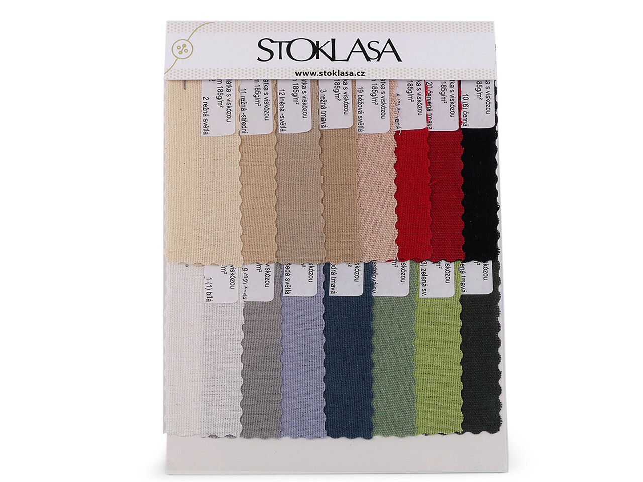 Vzorkovníky látek, které u nás najdete. Na každém vzorkovníku je QR kód, který vás po jeho načtení v aplikaci odkáže přímo na stránku konkrétní látky. QR kód vám urychlí a zpohodlní vyhledávání.
