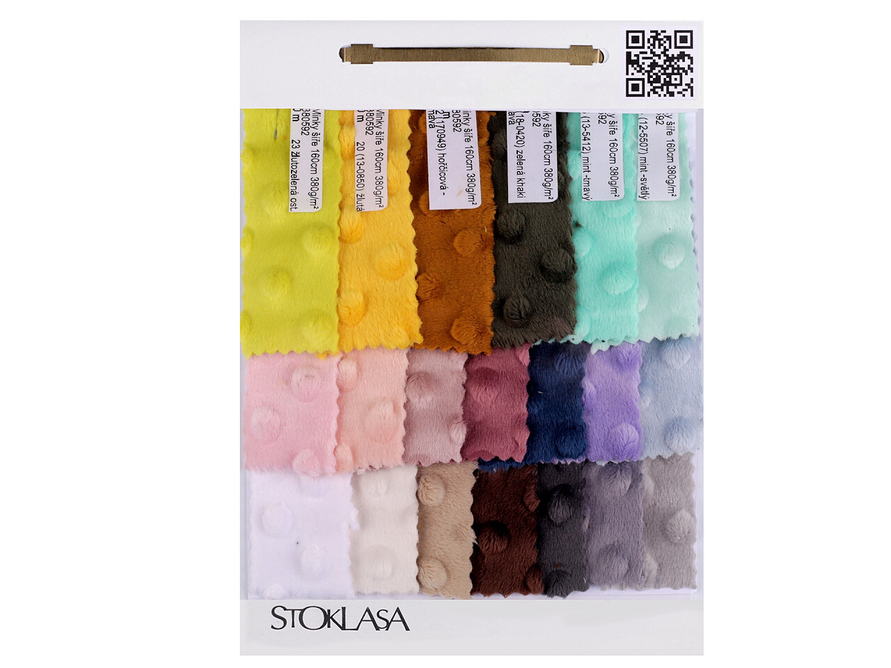 Vzorkovníky látek - minky, plátno, kočárkovina, teplákovina, velvet, tyl, šifon - 1 ks - 380592 viz foto minky 3D