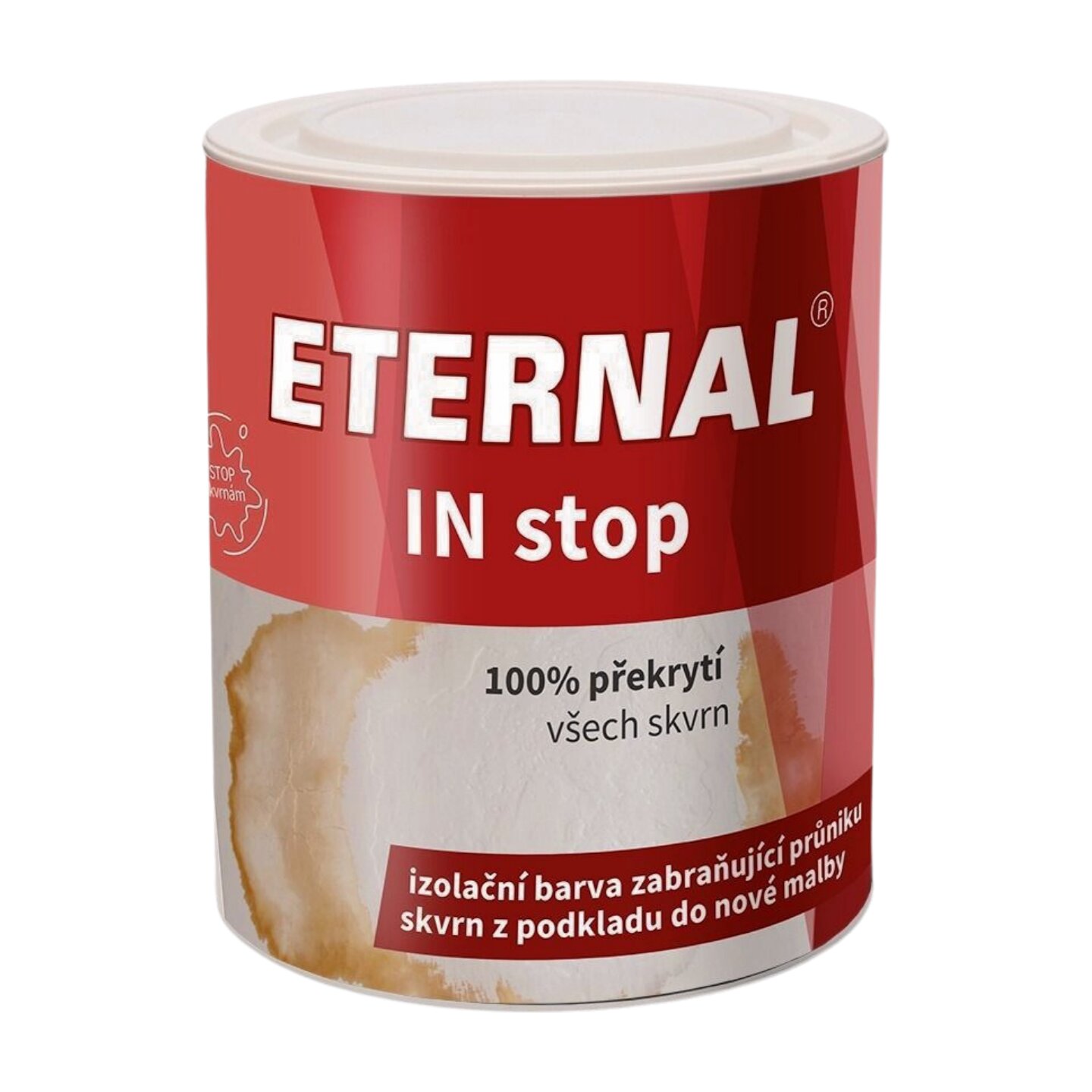 Eternal IN Stop slouží k základním nátěrům, které zabraňují průniku nikotinových skvrn a dalších nežádoucích skvrn do nové malby.