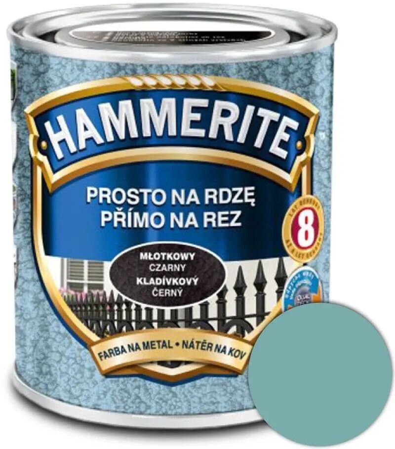 Hammerite Přímo na rez je jednosložková na vzduchu schnoucí antikorozní a dekorativní barva železné kovy (ocel, železo, litina) pro použití v exteriéru i interiéru. Nátěr je speciálně vyvinutý přímo na zkorodovaný kov, zajišťuje jeho aktivní ochran... Hammerite Přímo na rez je jednosložková na vzduchu schnoucí antikorozní a dekorativní barva železné kovy (ocel, železo, litina) pro použití v exteriéru i interiéru. Nátěr je speciálně vyvinutý přímo na zkorodovaný kov, zajišťuje jeho aktivní ochranu proti korozi až na 8 let. Díky nové technologii DUALTECH je zaručená vysoká vodoodpudivost nátěru. Nátěr vyniká krátkou dobou schnutí a je jednoduchý na použití. Nátěr je omyvatelný vodou a saponáty, odolný proti ohybu a nárazu, dobrá přilnavost k podkladu. Má vysokou tepelnú odolnost - nepřetržité zatížení teplotou 80°C, pravidelné zatížení teplotou až do 150°C, dlouhodobé vystavení teplotám nad 50°C může způsobit změny barvy -vyblednutí. Výborná chemická odolnost - plně vytvrzený odolává postříkání zředěnými kyselinami nebo zásadami (o maximání koncentraci 10 %), benzínem, motorovou naftou a všemi běžnými stavebními materiály, natřené povrchy však nesmí být ponořeny do výše uvedenýh chemickýh látek.Vlastnosti