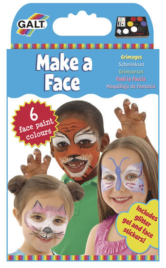 Jedinečná souprava s barvami na obličej Ti přinese tu pravou zábavu s Tvými kamarády! Jdeš na hokej, na oslavu nebo máš prostě chuť vyzkoušet něco nového? Pak by Ti neměla tato souprava uniknout! Obsah balení: 6 různých barev na obličej, třpytivý gel, štětec, houbička. Pro děti od 5 let. Výrobce: Galt. Návod: 1) Omyjte a usušte obličej na který budete malovat. 2) Dlouhé vlasy stáhněte gumičkou (není součástí balení) aby vám nepřekrývaly obličej. 3) Inspirujte se obrázky na obalu. 4) Použijte štětec nebo houbičku k nanesení barev na obličej. 5) Nenanášejte barvy příliš blízko očí. 6) Než nanesete třpytivý gel, ujistěte se, že barva již uschla. 7) Barvy z obličeje odstraňte mýdlem a vodou.
