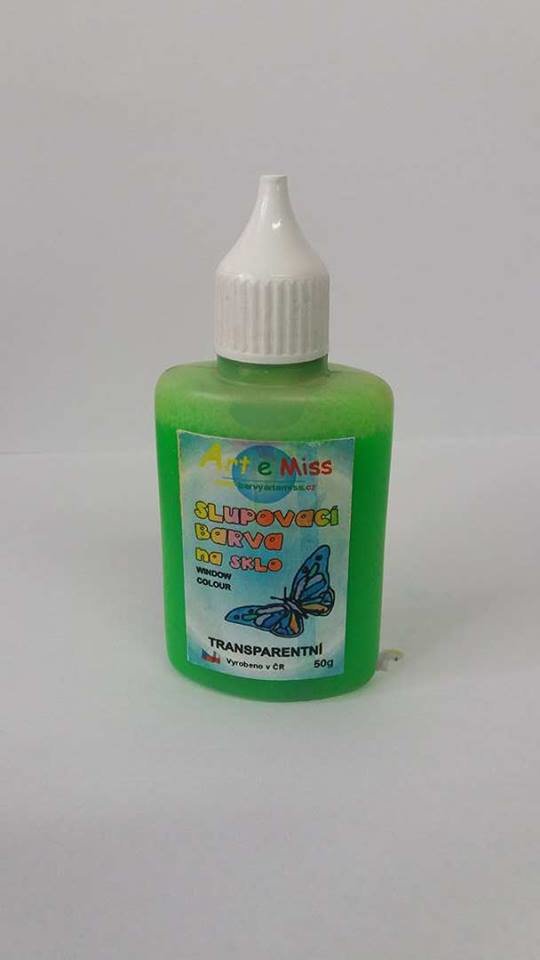 Slupovací barva - po zaschnutí transparentní - po nasvícení UV lampou svítí Vodou ředitelná barva na většinu hladkých povrchů (např. sklo - okno, zrcadlo, dlaždice, ledničku aj.) Slupovací barva je zdravotně nezávadná, voděodolná a bez zápachu. Pokud se barvy nenasvítí mají stejné odstíny jako zvýrazňovače. Před použitím barvu dobře protřepeme. Barvu nanášíme na hladkou adhezní folii. Nejdříve nakreslíme kontury obrázku a necháme 1-2 hodiny zaschnout. Poté plochu vyplníme barvou. Po úplném zaschnutí (cca 24hodin) obrázek opatrně sloupneme a přesuneme na sklo či jinou zvolenou plochu.