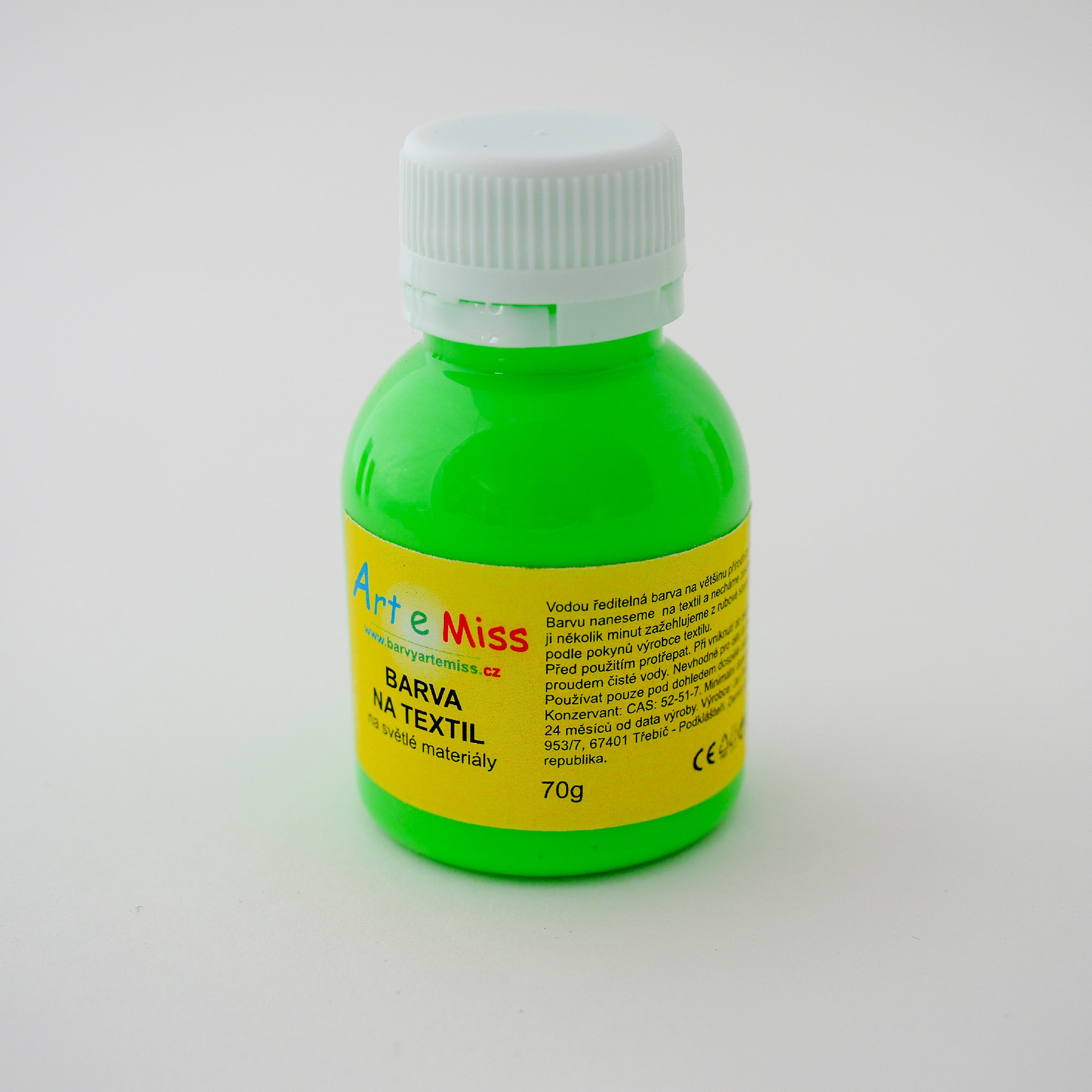 Barva je určená především na světlé materiály. Pro zdobení tmavých a pestrých podkladů používejte barvu na tmavý textil. Rozdíl mezi barvou na světlý a tmavý textil je ten, že barva na světlý textil se vsákne do vláken, oproti tomu barva na tmavý textil zůstává více na povrchu. Z toho důvodu barva na světlý textil tolik nekryje. Její výhodou jsou zářivé a výrazné odstíny. Jednoduše řečeno, složka která pomáhá barvám na tmavý textil ,,zamaskovat" podklad, způsobuje na světlém textilu méně výrazné odstíny.