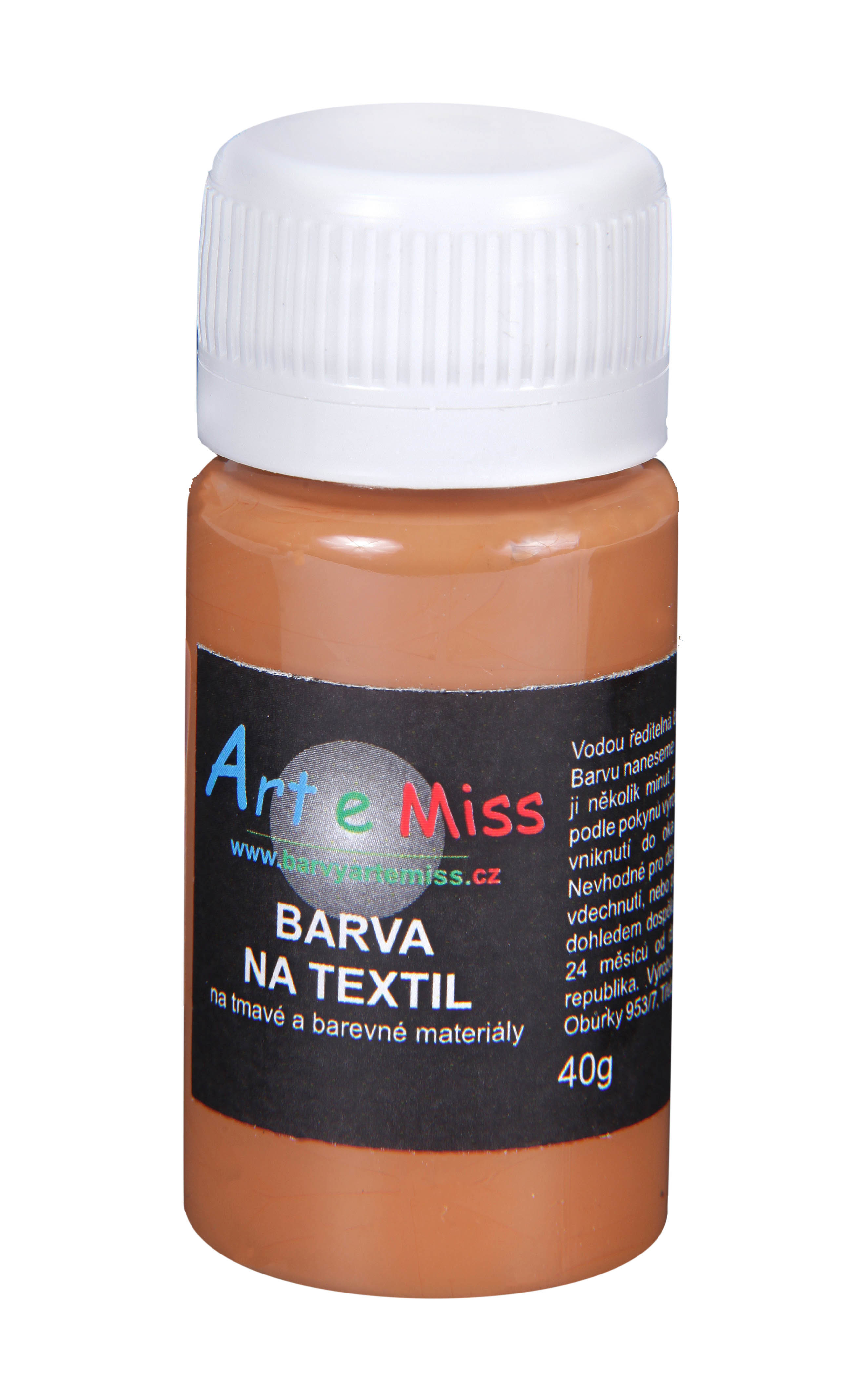 Barva je určená pro zdobení tmavých a výrazně zbarvených podkladů. Rozdíl mezi barvami na tmavý a světlý textil je ten, že barva na tmavý textil zůstává více na povrchu a naopak barva na světlý textil se vsákne do vláken. Z toho důvodu barva na světlý textil tolik nekryje. Jednoduše řečeno, složka která pomáhá barvám na tmavý textil ,,zamaskovat" podklad, způsobuje na světlém textilu méně výrazné odstíny. Na světlé materiály používejte barvu na světlý textil.