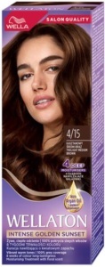 Permanentní barva na vlasy Wellaton v odstínu 4/15 Zářivě hnědá zajišťuje 100% krytí šedivých vlasů a intenzivní odstín s hloubkovým proniknutím barvy díky technologii High Dye Loaded.