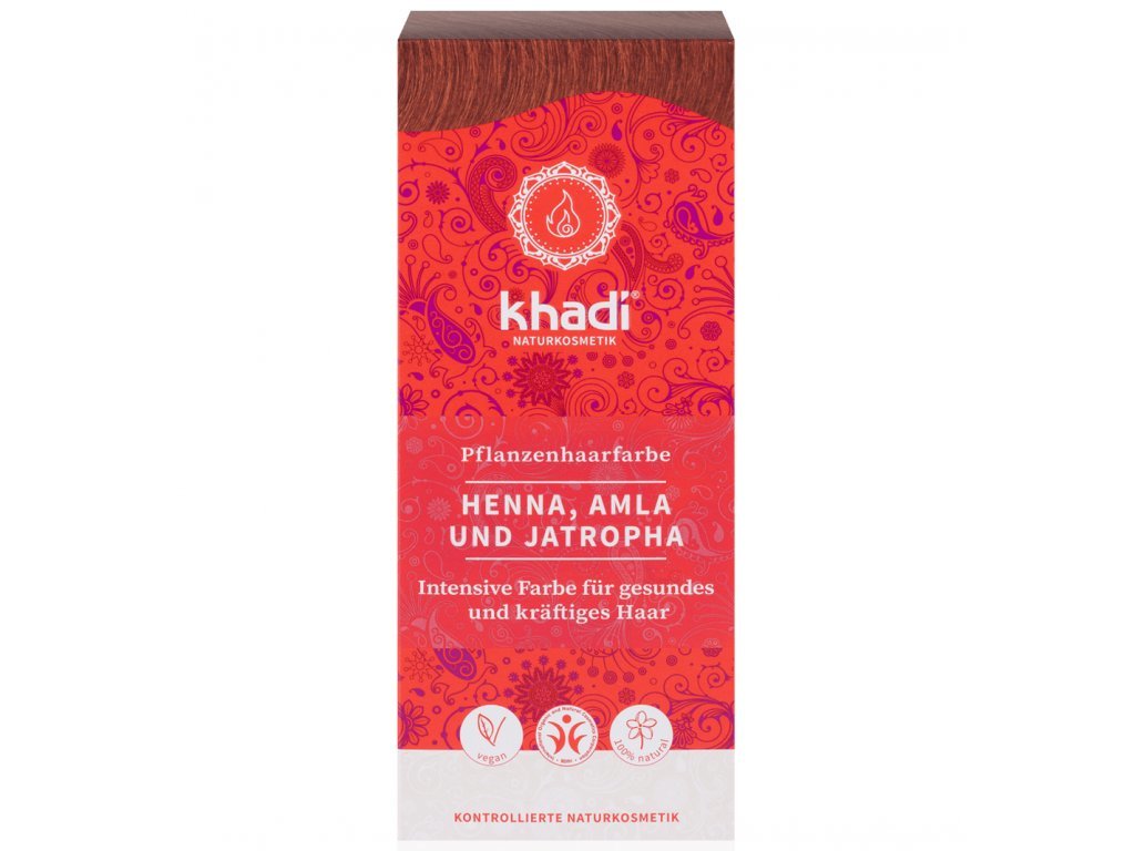 Rostlinná barva na vlasy Khadi Henna & Amla & Jatropha dodává světlým vlasům jantarově červenou až ohnivou barvu, tmavším vlasům jantarově mahagonovou barvu.Výsledný tón závisí na přirozené barvě Vašich vlasů. Jemné vlasy se barví intenzivněji než silné vlasy. Khadi barva Henna, Amla & Jatropha dodává vlasům zároveň výrazný lesk a objem. Tato receptura obsahuje velké množství pečujících rostlin, jejich cenné složky intenzivně ošetřují vlasy. Khadi Henna & Amla & Jatropha je čistě přírodní barva na vlasy bez syntetických barvicích složek, zvýrazňovačů barev, kovových solí či konzervantů. Použití: