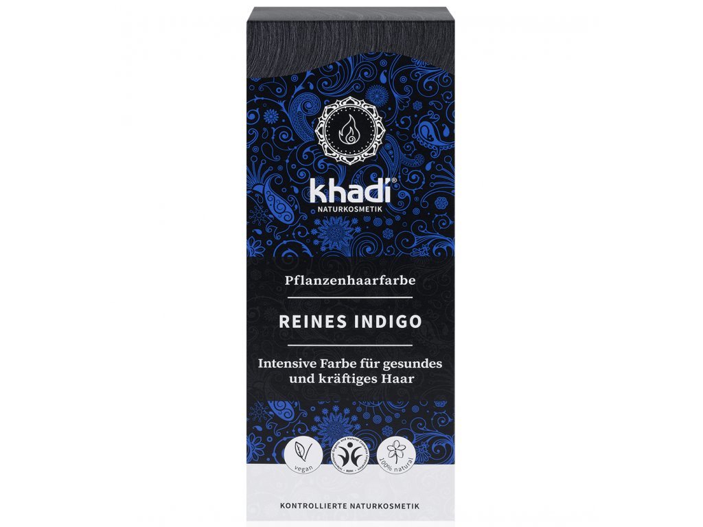 Rostlinná barva na vlasy Khadi Čisté indigo barví vlasy černým odstínem, s chladným modrým odleskem.Výsledný tón závisí na přirozené barvě Vašich vlasů. Khadi barva Čisté indigo dodává vlasům zároveň výrazný lesk a objem. Kromě samostatného použití můžete používat tento odstín i jako přídavek do ostatních odstínů Khadi, a to za účelem získání tmavšího barevného výsledku.