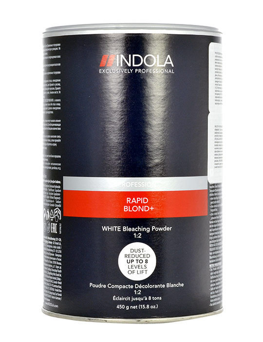 Zesvětlující pudr na vlasy **Indola Profession Rapid Blond+ White Bleaching Powder**. Zesvětlující pudr na vlasy Indola Profession Rapid Blond+ White Bleaching Powder obsahuje bohaté složení, které poskytuje přesné blond tóny. Zároveň vlasy vyživuje a zlepšuje jejich strukturu. **Míchání**: Smíchejte 35g přípravku Rapid Blond+White Dust Reduced Bleaching Powder se 70ml (1:2) Profession Cream Developer 2%, 6% nebo 9%. _Použití pro nebarvené vlasy_: Aplikujte 1-2 cm od kořínků. Nechte chvíli působit a poté důkladně opláchněte. Zesvětlení o 2-3 tóny. _Použití pro barvené vlasy_: Aplikujte na odrosty. Použijte 6% Profession Cream Developer. Vlasy kontrolujte každých 5 minut. Nechte působit 20-45 minut, v závislosti na textuře vlasů a požadovaném výsledku. Poté opláchněte vodou a použijte šampon a kondicionér.
