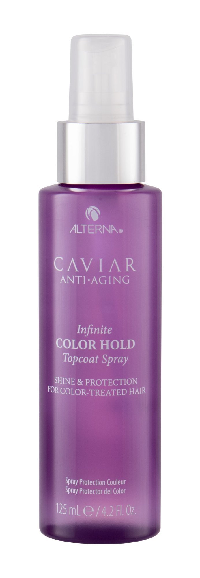 Ultra lehký sprej **Alterna Caviar Anti-Aging Infinite Color Hold** je posledním krokem v péči o barvené vlasy. Uzavře povrch vlasového vlákna a tím uzamkne barevné pigmenty uvnitř vlasů. ### Prodlužte životnost barvy na vašich vlasech! * dodává lesk, * poskytuje UV ochranu, * neobsahuje sulfáty, parabeny a syntetická barviva. ### Jaké složky sprej obsahuje? * malinový a slunečnicový olej - bohaté na antioxidanty a vitamíny, chrání barvu, * výtažek z kaviáru - vyhlazuje vlasové vlákno a zvyšuje lesk, * seasilk - hydratuje a opravuje poškozené vlasy. ### Používejte sprej na ochranu barvy správně! Nastříkejte do suchých vlasů po stylingu.