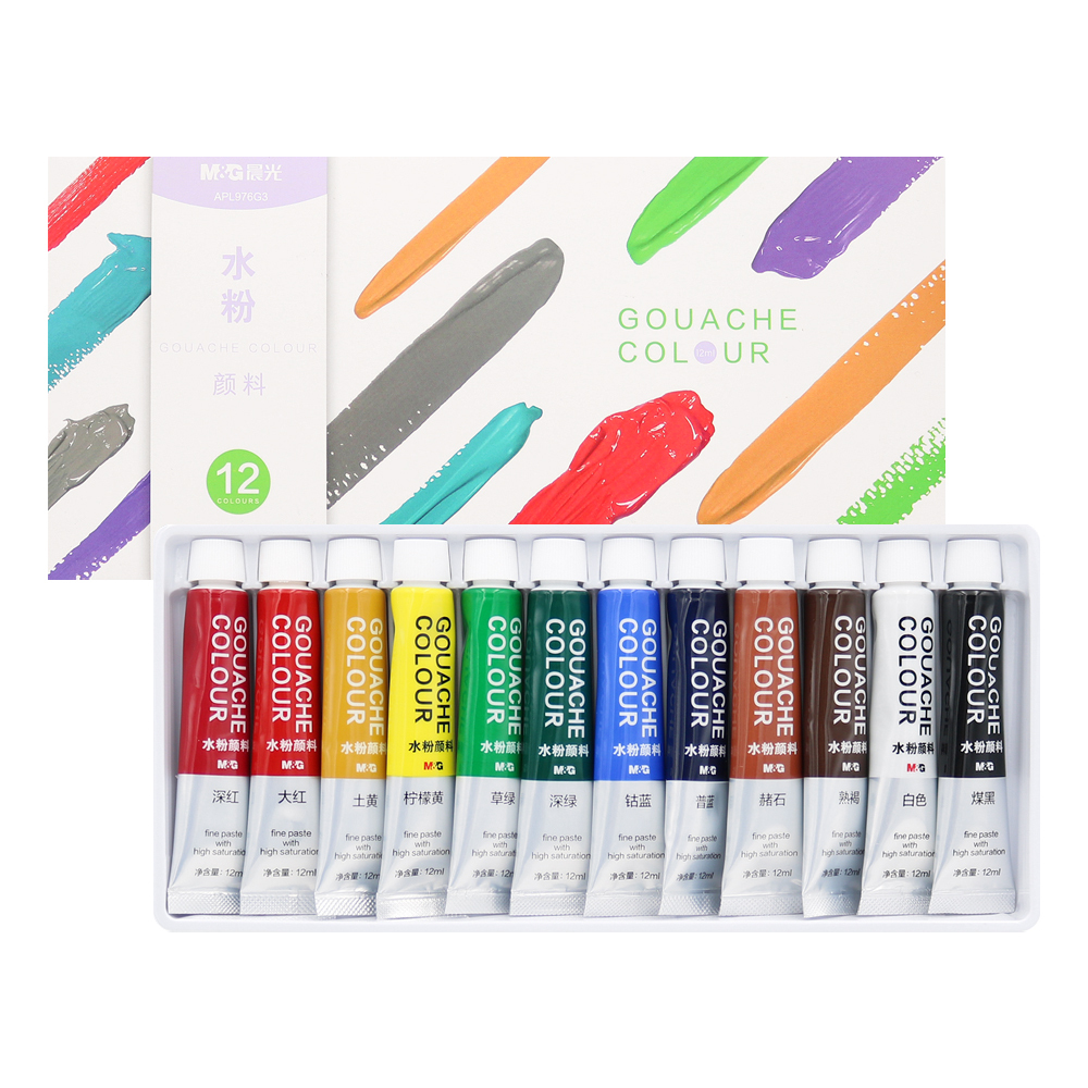 Barvy gvašové M&G 12 ml - sada 12 ks
