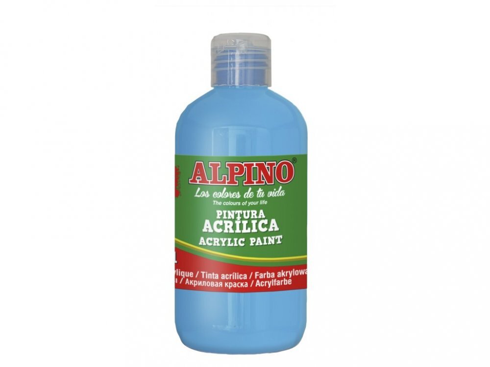 Láhev akrylové barvy do školy 250 ml. azurová modrá250ml láhev akrylové barvy, jasné barvy, je ideální pro zdobení všech druhů povrchů, jako je papír, dřevo, lepenka..., rozpouští se vodou, ale po zaschnutí je velmi odolná. Má lakový efekt. Před použitím protřepejte. Bez latexu.Upozornění: Při používání dětmi do 3 let se doporučuje dohled dospělých. Tento obal si uschovejte pro další použití.