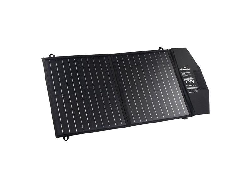 Skládací solární panel je určený pro nabíjení 12V baterií, bateriových nabíjecích stanic, notebooků, mobilních telefonů, powerbank a jiných zařízení s USB konektorem. Solární panel je vhodný i pro pro baterie v osobních automobilech, menších užitkových automobilech. Skládací design: dodává se s v kompaktním pouzdru; lze složit jako aktovku pro snadnou přepravu, skvělé pro kempování, turistiku a další outdoorové aktivity. Připojení k baterii je rychlé a jednoduché, a to pomocí kabelu se svorkami na baterii, který je v příslušenství. USB konektor pro připojení telefonu, DC 5,5mm konektor pro další příslušenství. Podle velikosti DC konektoru může být použit s různými přenosnými nouzovými napájecími zdroji. Vysoká účinnost konverze energie: Monokrystalické vysoce účinné solární články přemění až 22 %; fungují i při nízké úrovni osvětlení cca 40 000 luxů. Technologie TIR-C: inteligentní IC automaticky resetuje nabíječku, aby udržela zařízení nabité maximálním výkonem; eliminuje potíže s opakovaným zapojováním a odpojováním.