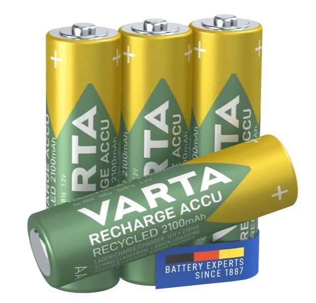Vyberte si ekologické řešení s nabíjecími bateriemi VARTA Recycled! Užijte si spolehlivý výkon baterií, které jsou šetrné k životnímu prostředí díky obsahu 11 % recyklovaného materiálu.