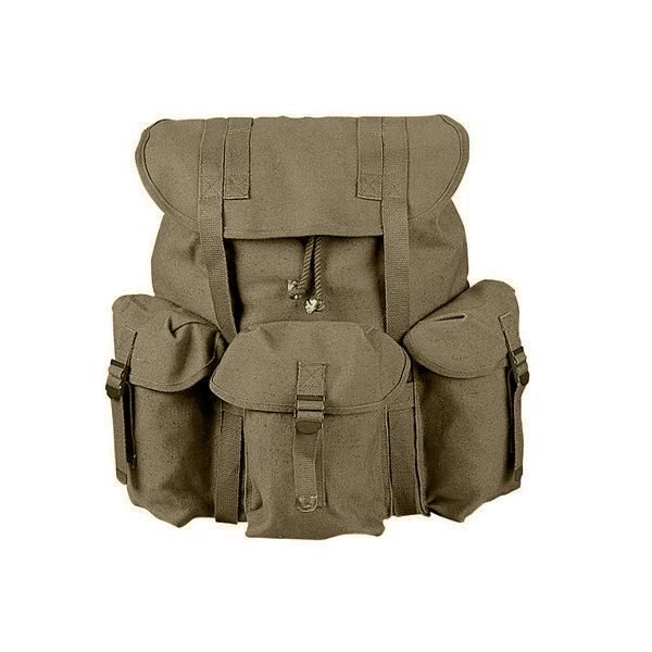 Zmenšená verze populárního armádního batohu ALICE. Batoh je vyroben ze silného bavlněného plátna. Hlavní prostor se zavírá pomocí stahovací šňůry a je překryt víkem s popruhy. Tři vnější kapsy se zapínáním na pásky se sponou. Popruhy jsou nastaviteln
