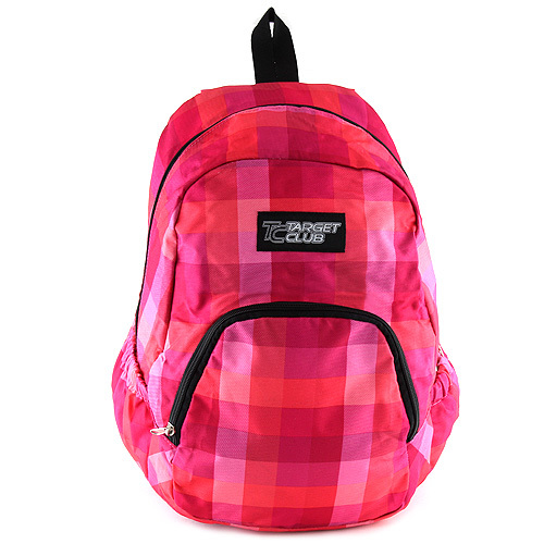 Trendový jednokomorový batoh včetně nastavitelných ramenních popruhů umožňuje pohodlné a dlouhodobé nošení. Zadní stěna zpevněna a přední kapsa uzavíratelná na zip. Součástí batohu jsou i dvě boční kapsy. Praktické poutko pro snadné přenášení či na zavěšení. Přední stranu zdobí nášivka značky Target. Vhodný pro volnočasové aktivity či na cesty. Rozměry batohu: výška 48 cm, šířka 35 cm, hloubka 16 cm. Váha batohu: 325 g.Materiálové složení: 100% polyester.