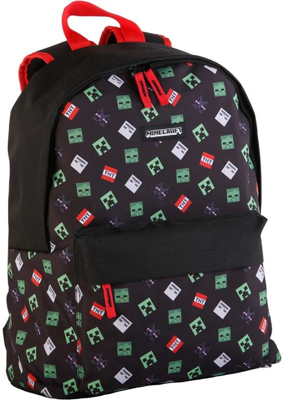 Prostorný černý batoh vyvedený v motivu hry Minecraft. Součástí jsou ergonomicky polstrovaná záda, délkově nastavitelné ramenní popruhy a ucho pro nošení v ruce. Zapínání je na zip.