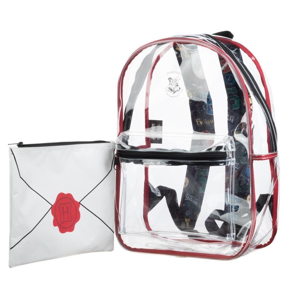Průhledný jednoprostorový batoh s přední kapsou a znakem kouzelné školy Bradavice. Batoh má zapínání na zip, délkově nastavitelné popruhy a ucho pro snadné nošení v ruce.