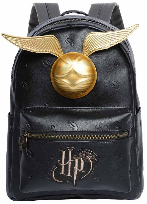 Černý batoh inspirovaný hracím míčkem Zlatonkou s křídly z filmu Harry Potter.