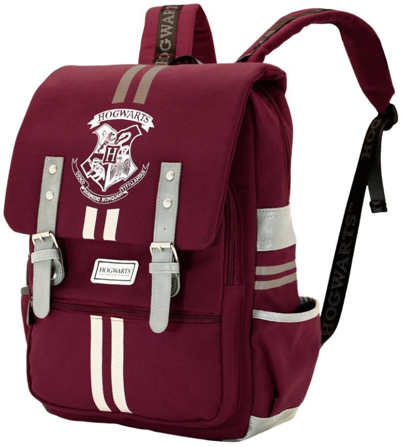 Atraktivní batoh vínové barvy s motivem Hogwarts (Bradavice) z filmové ságy Harry Potter.