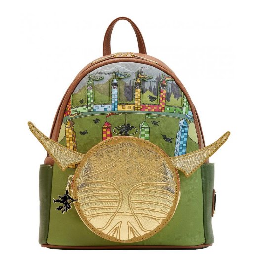 Batůžek má nastavitelné popruhy, na přední straně kapsu ve stylu Zlatonky s kovovým přívěskem chytače na koštěti. Je potištěn motivem famfrpálového hřiště a na postranních kapsách jsou znázorněny vlaječky jednotlivých kolejí. Na zadní straně batoh zdobí zlatý metalický nápis Famfrpál - Bradavice, vnitřní podšívka je stylově sladěná symboly jednotlivých kolejí.