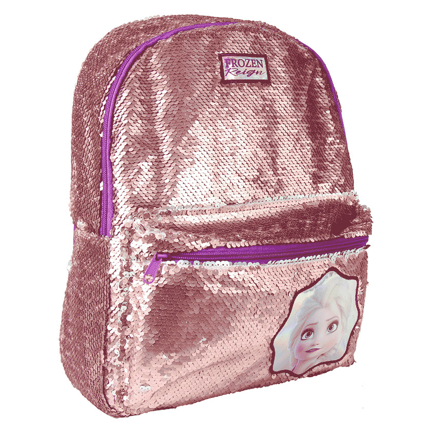 Dětský jednoprostorový batoh s přední kapsou a měnícími se flitry. Batůžek s motivem Elsy a nápisem Frozen, ve vrchní části. Batoh má délkově nastavitelné popruhy a ucho pro snadné nošení v ruce.