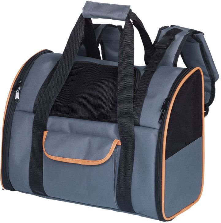 Zadní batoh Nobby CONCORD na psa či kočku (do 6 kg), vyroben z odolného omyvatelného mikrovlákna. S plně nastavitelnými vycpanými popruhy na rameni a pásovým pásem. Integrovaná karabina uvnitř batohu zabraňuje vašemu pejskovi ve vyskočení ven. Síťové části na třech stranách na batohu zaručují cirkulaci vzduchu uvnitř i při zavřeném batohu. Velké vstupní otvory ze 3 stran. 2 kapsy na chovatelské potřeby. Batoh opatřen reflexními prvky. Odnímatelné dno batohu pro snadné čištění. Smyčka pro upevnění na kočárek nebo kufr. Rozměry: 41 x 21 x 30 cm (délka x šířka x výška). Nosnost batohu max. 8 kg. Udržba: Batoh čistěte vlhkým hadříkem.