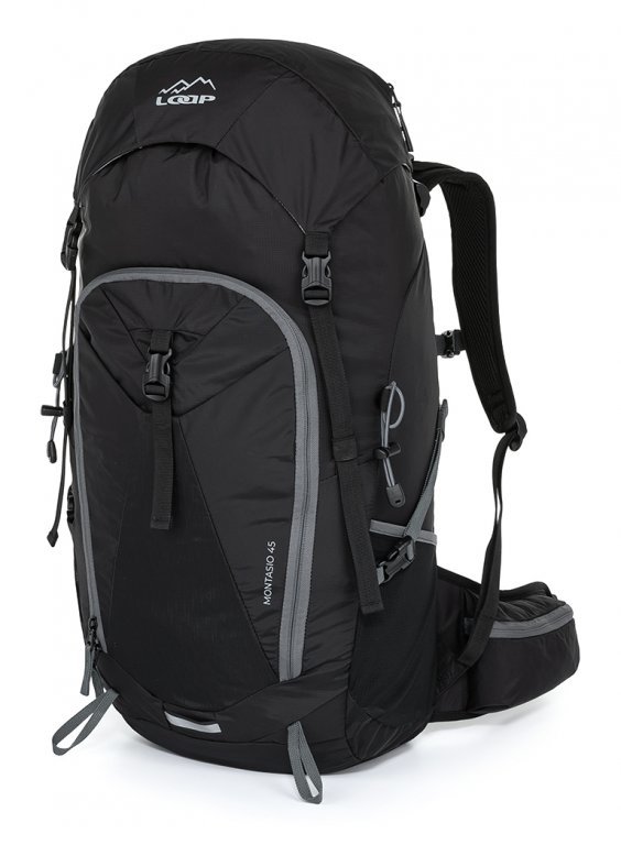 Velký outdoorový batoh MONTASIO 45 má objem 45 litrů a nosnost 12 kilogramů. Vyrobený je z velmi odolné a pevné tkaniny Rip Stop, která brání opotřebení a roztržení. Pevný nosný zádový systém VAS se postará o správnou polohu na zádech. Díky materiálu EVA je vysoce odolný. Jedná se o pěnový, téměř nezničitelný materiál, který je potažen ochranou pevnou a vysoce prodyšnou síťovinou. Materiál EVA je velice lehký, prázdný batoh na zádech skoro neucítíte.Tento pohodlný jednokomorový batoh se plní vrchem a zepředu. K dispozici máte pět vnějších kapes a jednu vnitřní kapsu s prostorem na hydrovak. Ramenní popruhy a bederní pás jsou anatomicky tvarované. Zádům odlehčí také boční kompresní popruhy a posuvná prsní spojka. Součástí batohu je vrchlík, který se dá nastavit pomocí přezek, balanční popruhy a praktické úchyty na další vybavení. Batoh s reflexními prvky a integrovanou pláštěnkou má rozměry (výška × šířka × hloubka) 68 × 28 × 22 cm a hmotnost 1160 gramů. Je vhodný na turistiku a cestování.