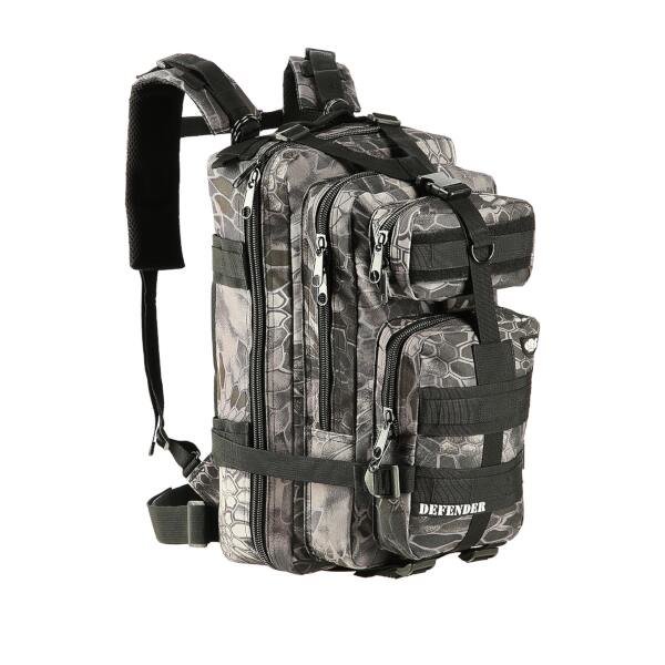 Materiál použitý na výrobu batohu Defender je vysoce odolný nylon, který je odolný vůči dešti a vodě do výšky vodního sloupce 1000 mm.