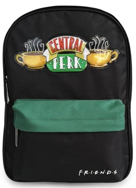 Atraktivní jednoprostorový černý batoh s přední zeleno-černou kapsou a motivem Central Perk. Batoh s délkově nastavitelnými popruhy a uchem pro snadné nošení v ruce je vhodný na každodenní využití.