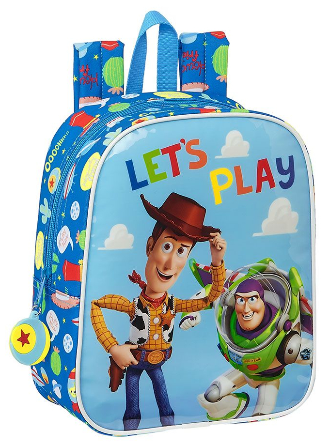 Modrý batoh s barevnými detaily inspirovaný postavičkami z filmu Příběh hraček. Batoh má délkově nastavitelné ramenní popruhy. Vyrobeno z pevného polyesteru se snadno rozepínatelnými zipy. Ideální pro každodenní použití.