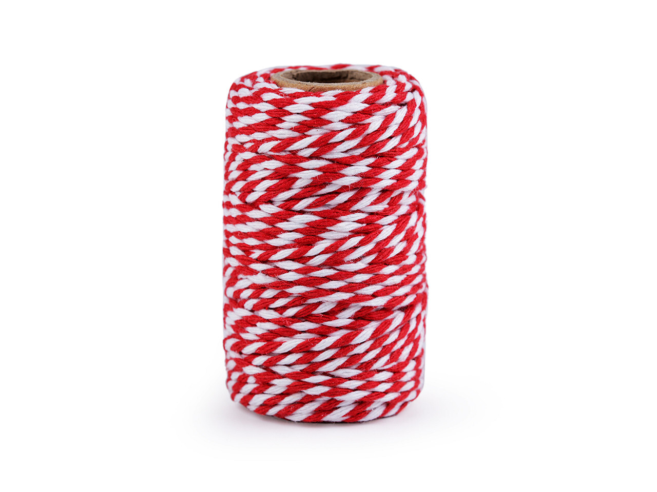 Bavlněná dvoubarevná šňůra je velice pevná, spletená z 10 tenkých nití. Využijete ji k výrobě různých dekorací, k balení dárků, k ozdobení a vázání listin či zápisů apod.