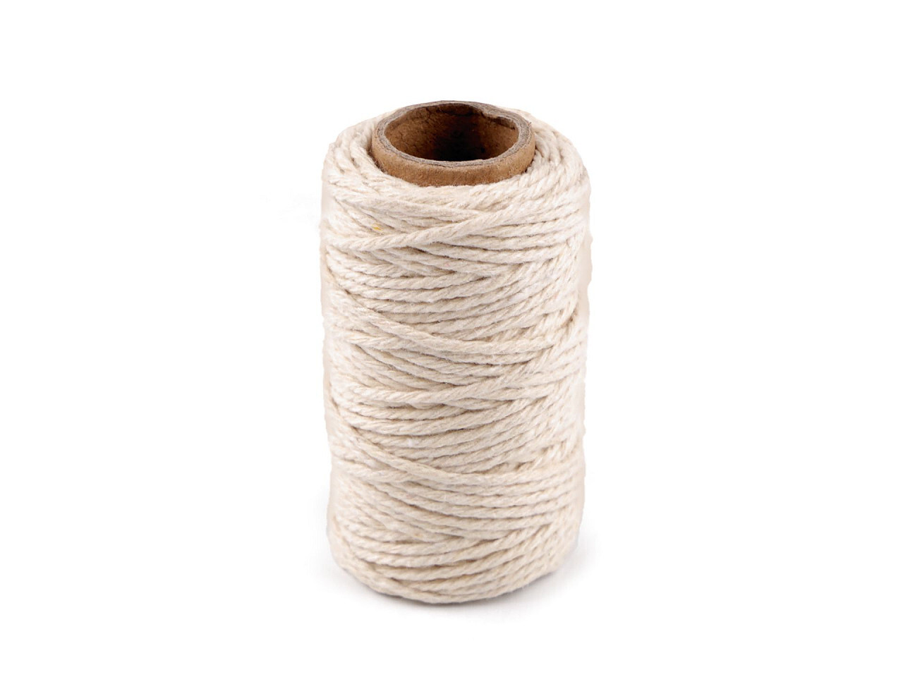 Bavlněná šňůra je velice pevná. Je spletená z devíti tenkých nití. Použití: Šňůra je vhodná k výrobě různých dekorací nebo k originálnímu balení dárků. Hodí se k aranžování květinových vazeb nebo ikeban, do tunýlků pytlíčků, ale využití nalezne i ve scrapbookingu.