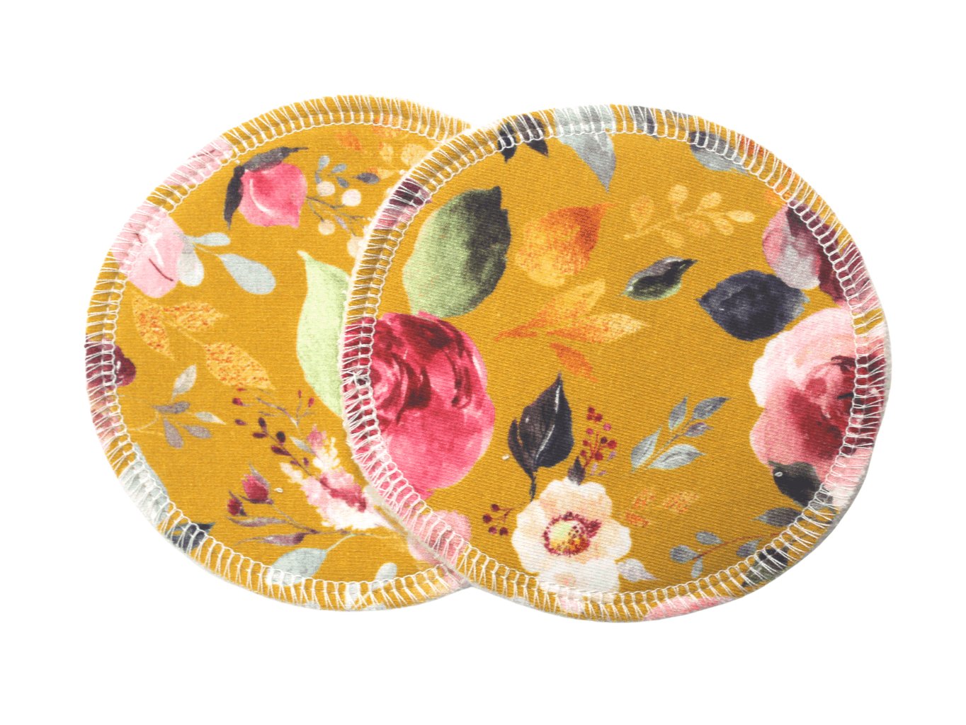 BIO Vložky do podprsenky s GOTS - Malované pivoňky v hořčicové (biobavlněný úplet)