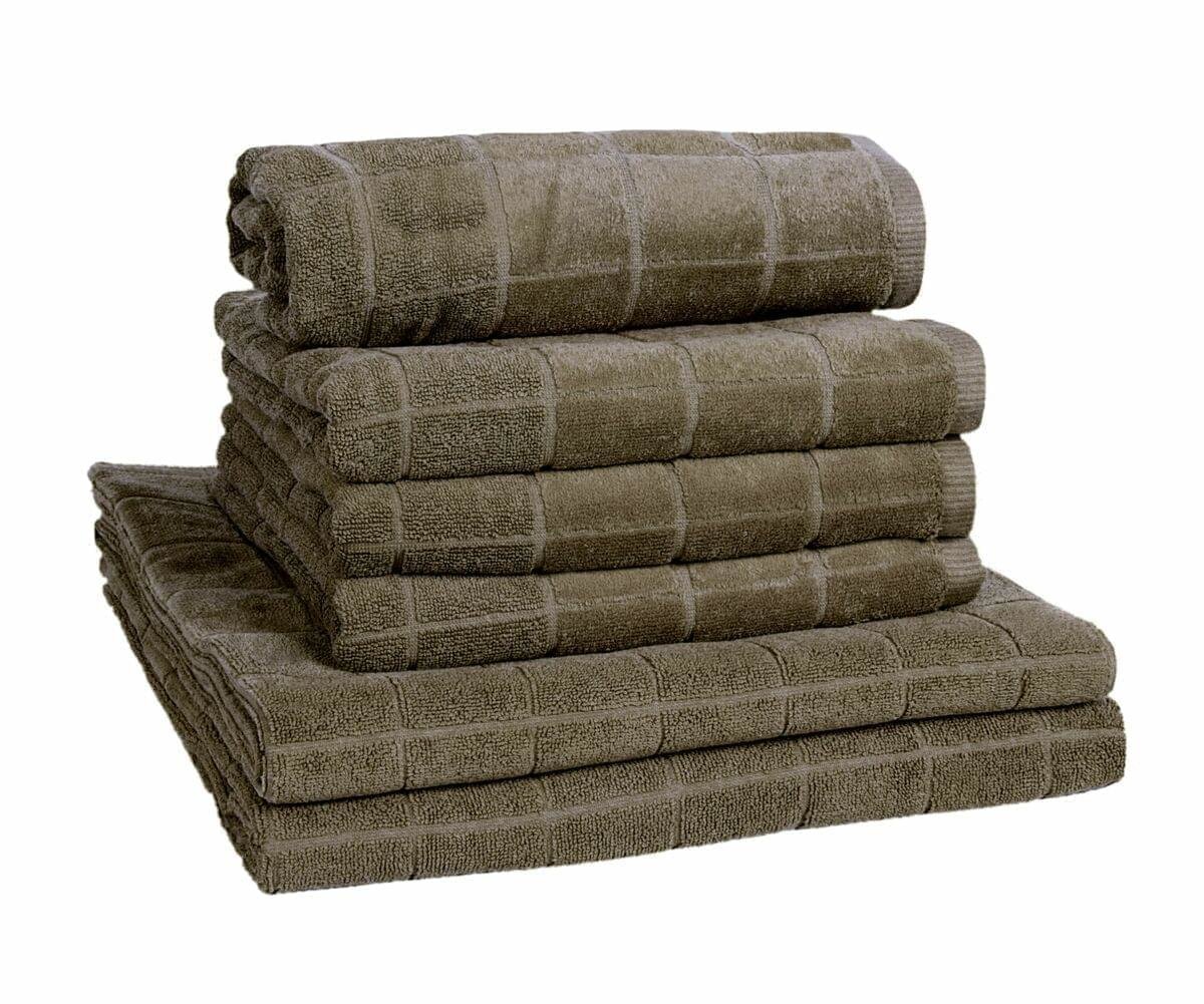 Příjemné a hebké na dotek ručníky v dezénu s kostičkou jsou perfektně savé díky vysoké kvality bavlny. Okraj ručníků zdobí jiná struktura a to měkoučký na omak velúr.