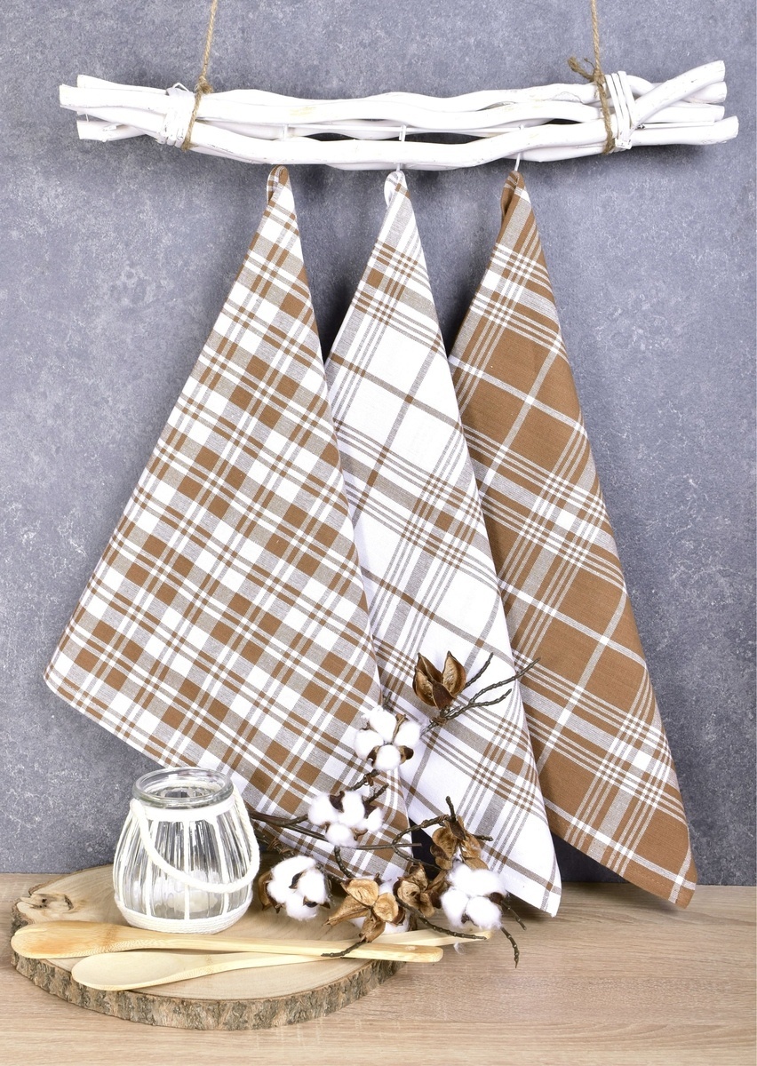Utěrka bavlněná, Braun cucine 2058, set 3ks, hnědé