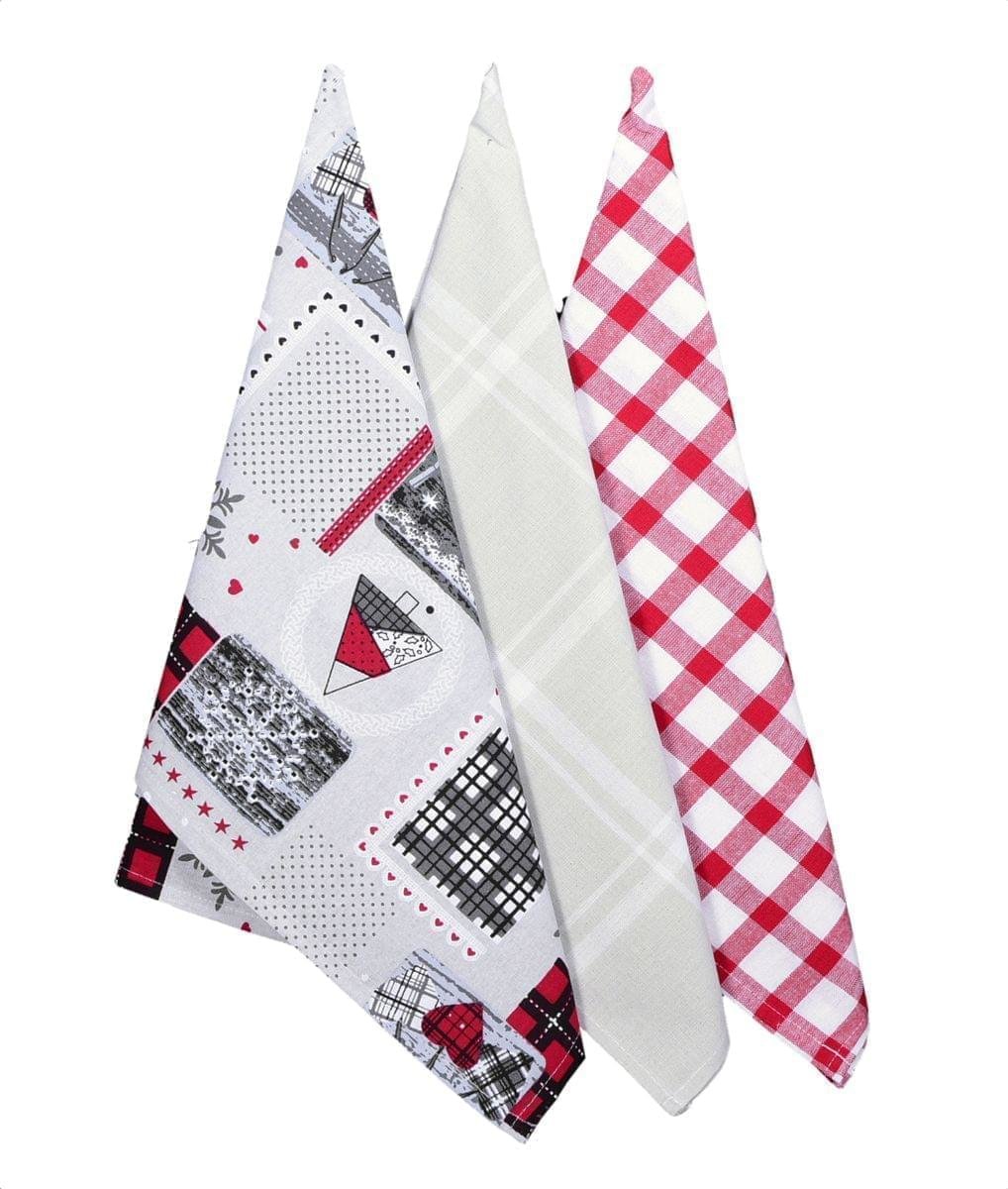 V sadě jsou 2 utěrky žakárové hladké a jedna s potiskem