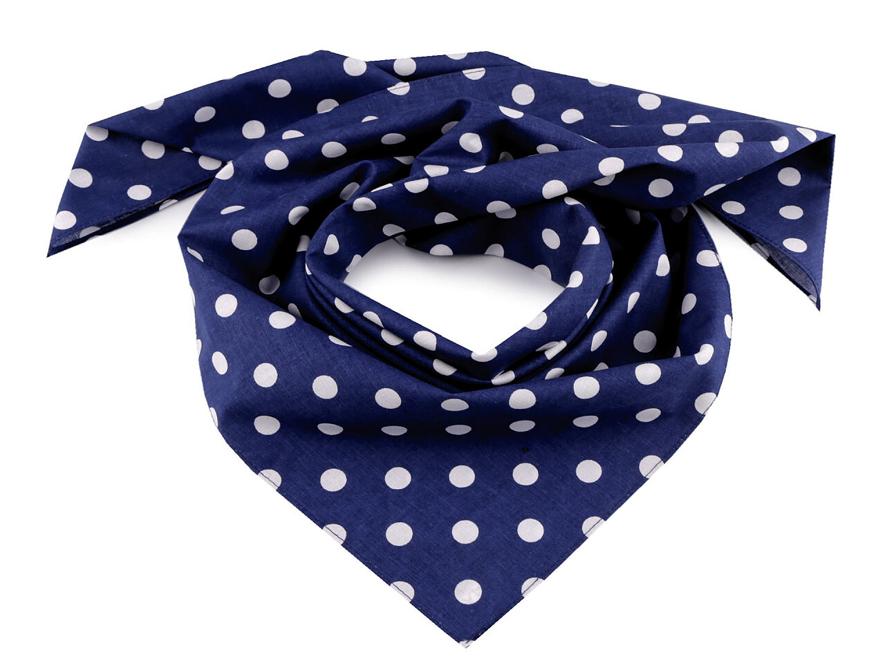 Bavlněný šátek s puntíky 65x65 cm - 1 ks - 9 modrá tmavá