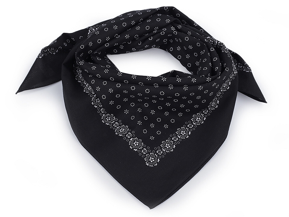 Bavlněný šátek drobné květy 70x70 cm - 1 ks - 3 černá bílá